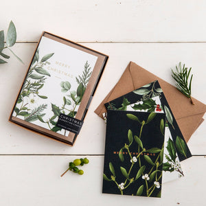 Box of 8 Luxury Botanical Christmas Cards - 'Greenery' Collection
